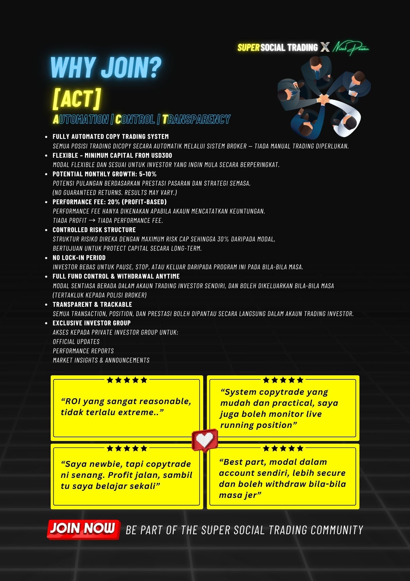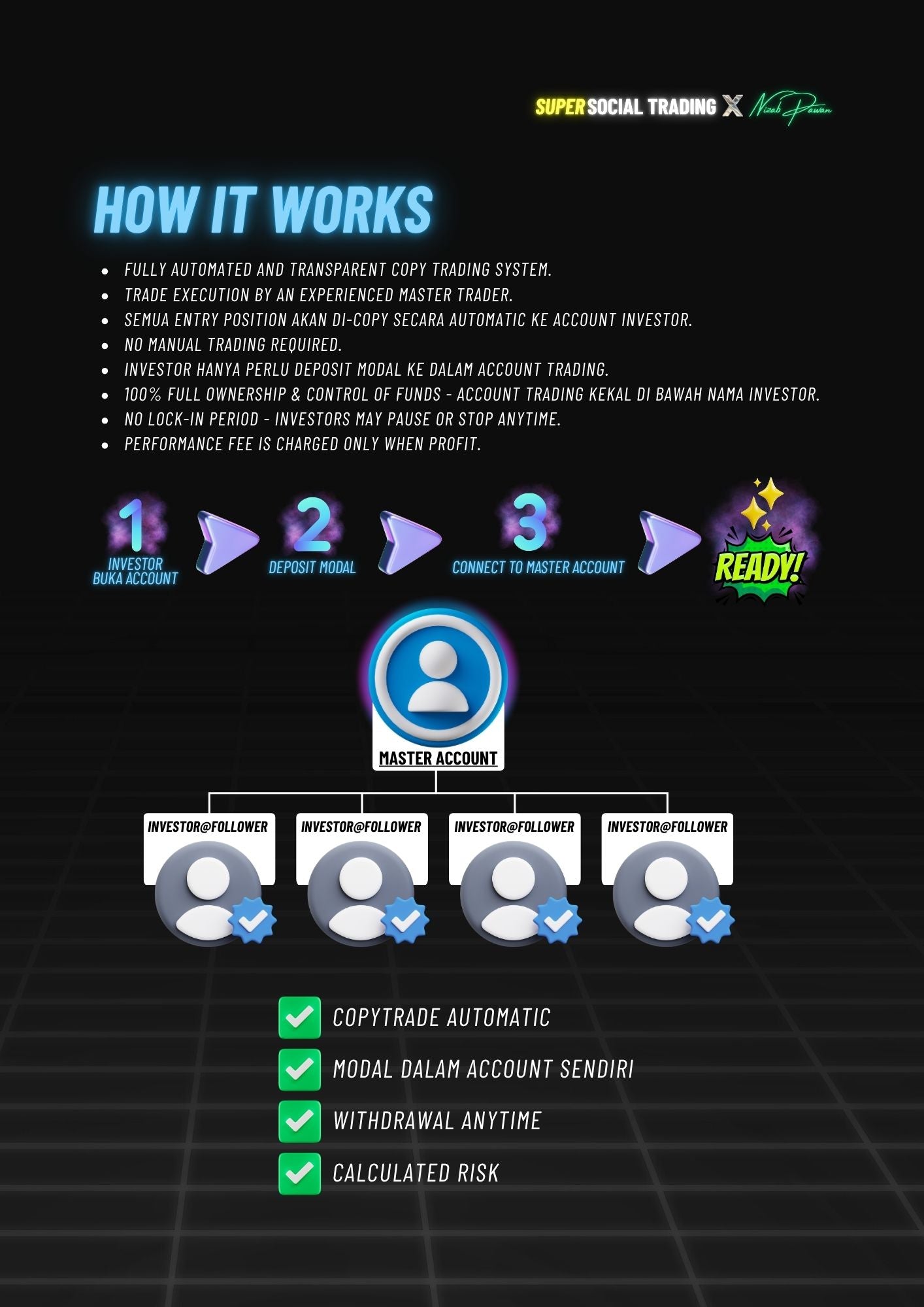 🔒 FULL CONTROL KE ATAS ACCOUNT DAN MODAL SENDIRI. ANDA BOLEH WITHDRAW ATAU STOP BILA-BILA MASA.